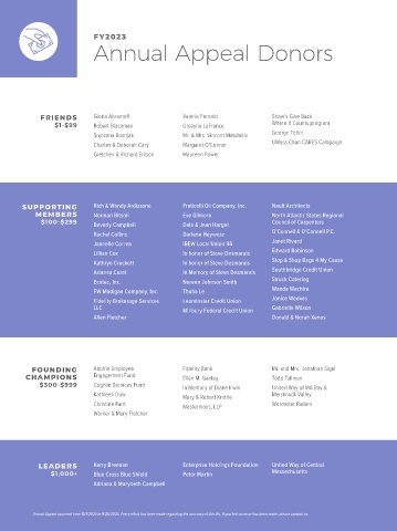 Annual Appeal occurred from 10/1/2022 to 9/30/2023. Every effort has been made regarding the accuracy of this list. If you feel an error has been made, please contact us.